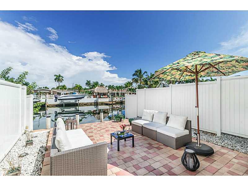 Townhome renovated, ocean access, no HOA Fees, Private patio, private dock for a 22' ft boat, jet ski or kayak, five mins. to the bay and 2 miles to the ocean. Top of the line appliances, tile and wood floors. Great schools, Close to shops, banks, restaur ants, LA fitness, Tennis courts, golf course., universities. Only 5 min to Bal Harbor Beach. Fee simple property (like a single family home on the water with Ocean access).