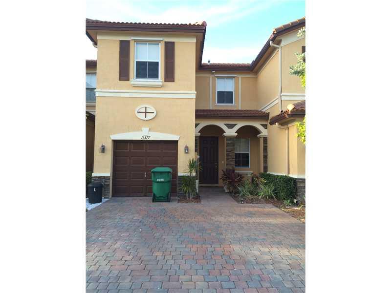 Beautiful townhouse like new with street view, Open kitchen with appliances, granite countertop, tile floors, carpet on 2nd floor, paved patio, washer & dryer, one car garage, security alarm, Enjoy a resort-style clubhouse with all the amenities pool, gym . Close to K-8 Rolando Espinosa School, Miami International Airport, Dolphin Mall, major highways, restaurants and shopping.