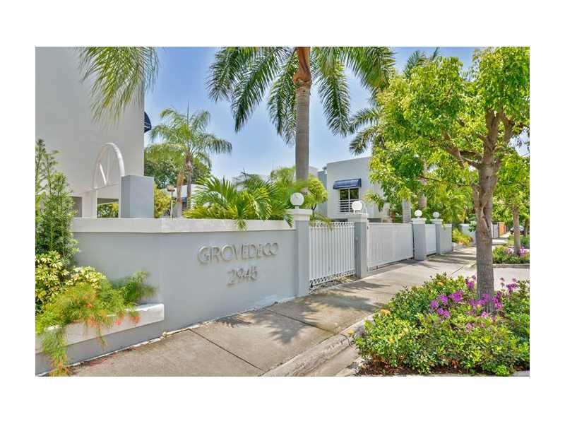 Enjoy living in vibrant Grovedeco in a two story 2 bed 2 1/2 bath townhouse in Coconut Grove. Featuring spacious beds new skylight baths & kitch. Marble flooring throughout downstairs, kitch is fully equiped with stainless steel appliances, stainless stee l double sink, washer & dryer, built-in stone entertainment TV center, lovely Zen patio area off living room. Low HOA fees, two assigned parking & pets allowed. Walking distance to dining, gym, shopping, dog parks, marina etc; Super location!