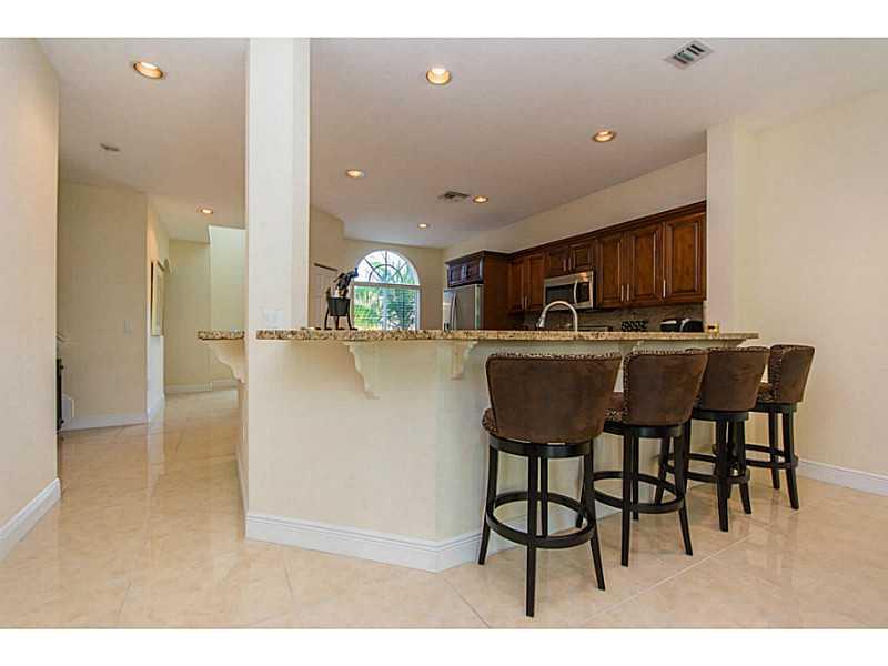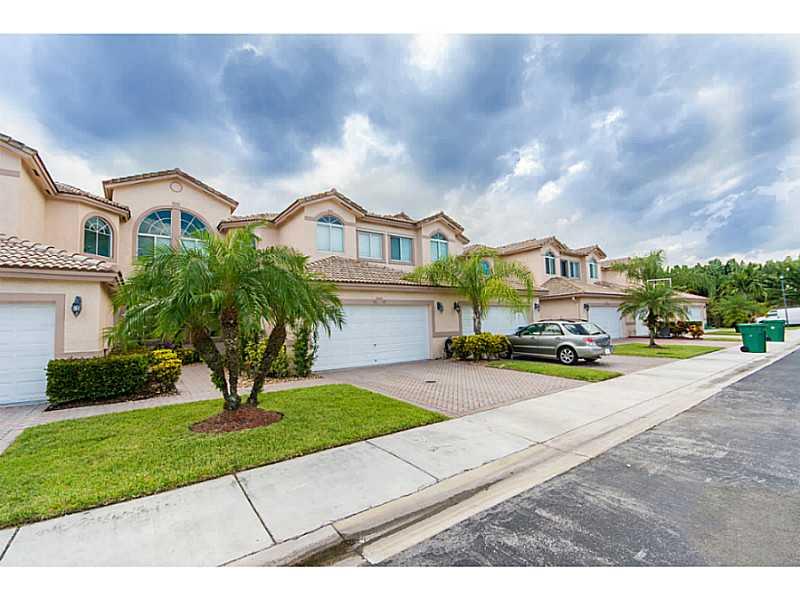Oversized 3/3.5 townhouse w/2 Car Garage with a large loft(optional 4th bedroom) plus an office. Features include soaring ceilings, first floor master suite w/huge walk-in closet, a second floor master bedroom suite w/ walk-in closet. Porcelain tile & Per go floors throughout. Upgraded eat-in-kitchen w/granite countertops & SS appliances. New AC unit, Custom Draperies, Hurricane Impact Windows & shutters for Sliding Doors. Great location, easy access to major hwys, located Cooper City A+ school district!