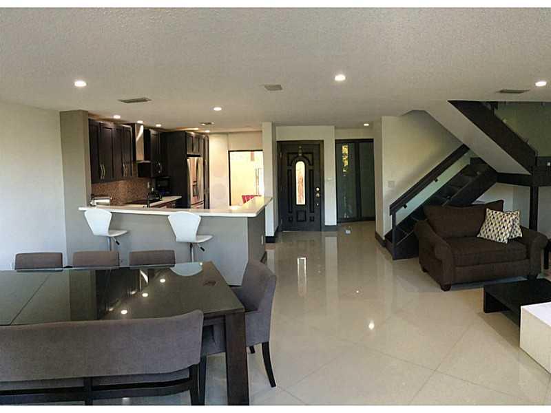 UPGRADED - REMODELED IN A PRESTIGIOUS GATED COMMUNITY. FABULOUS GOLF VIEW OF 15TH TEE HOLE. ROOF 6 YRS OLD. A/C 3 YRS OLD. GREAT OPEN FLOOR PLAN WITH CERAMIC ON FIRST FLOOR. QUARTZ KITCHEN COUNTERTOPS, SS APPLIANCES, ACCORDIAN HURRICAINE SHUTTERS,, SCREE NED PATIO. WOOD STAIRS, AND UPSTAIRS, 3 LARGE BEDROOMS, GRANITE VANITIES, JACUZZY /SHOWER TUB IN MASTER BATHROOM, ONE CAR GARAGE CONVERTIBLE & 2 SPACES IN FRONT DRIVEWAY. NICE BACK PATIO WITH PRIVATE GREEN VIEW . FRONT ENTRY WITH CUSTOM GARDEN.