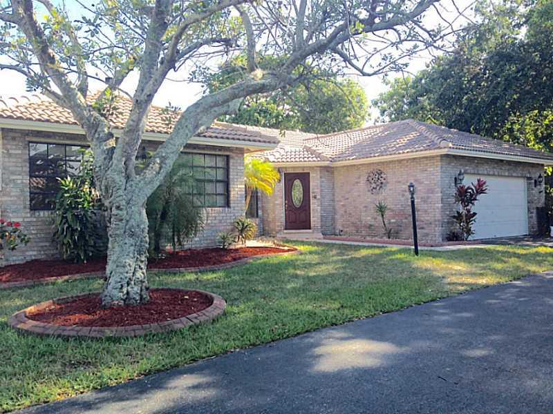 Desirable neighborhood in North Coral Springs. Very convenient to all highways. 3 Bedroom, 2.5 Bath, Pool home. Large, open living room with fireplace. Granite in kitchen and wet bar w/ wine cooler in family room. Large bedrooms. Master bathroom and half bathroom updated. Very sizeable outdoor patio w/ pavers. Large custom, tiled, saltwater pool w/ built-in seating. Long driveway - great corner lot - promotes privacy. Hurricane shutters, sprinklers, new roof.