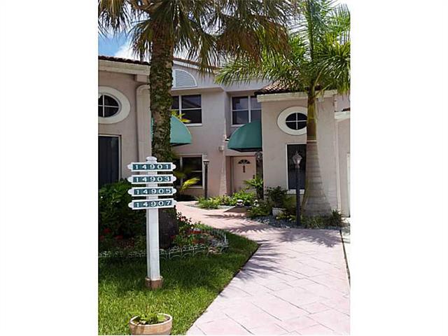 Beautifully renovated corner townhouse located in ground floor, 3 bedrooms, 2.5 bath, Marble floors throughout, stainless steel appliances, screen patio, accordion shutters, laundry room, huge master bedroom with 2 walking closets, master bath with separa te tub and shower, double sink new bath vanity and much more! Located in the beautiful golf community of Grand Palms.