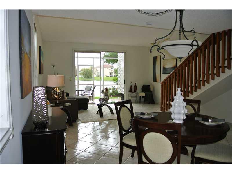 Gorgeous CORNER and LAKE front property!! Sits on a wide lake view and not a canal. Wood staircase and updated kitchen with granite counters, new kitchen cabinets, and backsplash overlooking the Lakeview!! Corner unit has two side windows, new A/C under warranty. Surrounded by rated A schools; gated community and easy access to major highways. What more can you ask... must see!