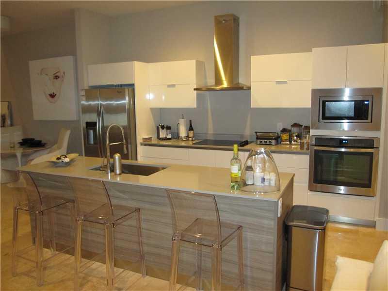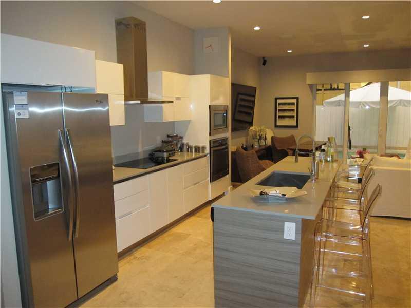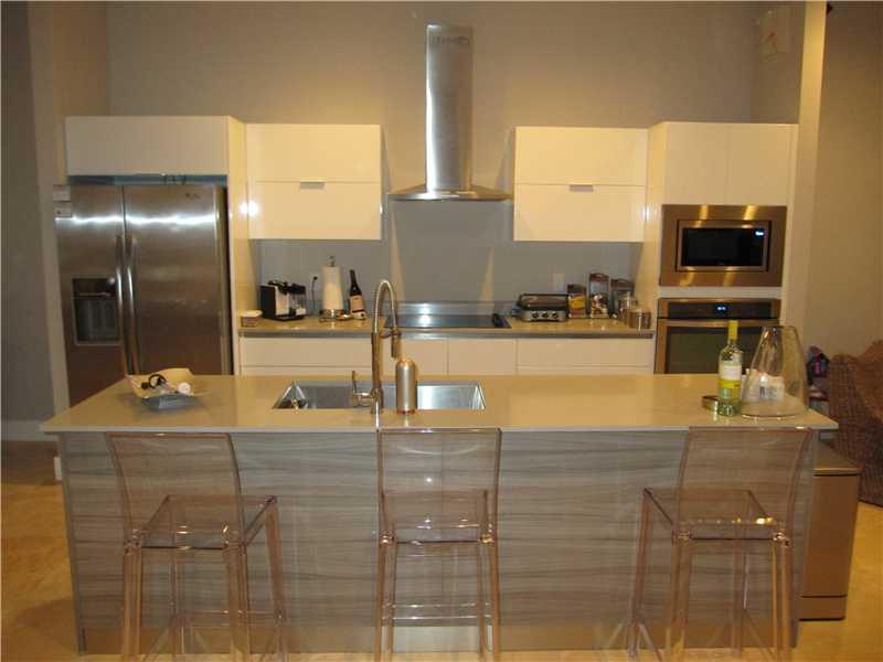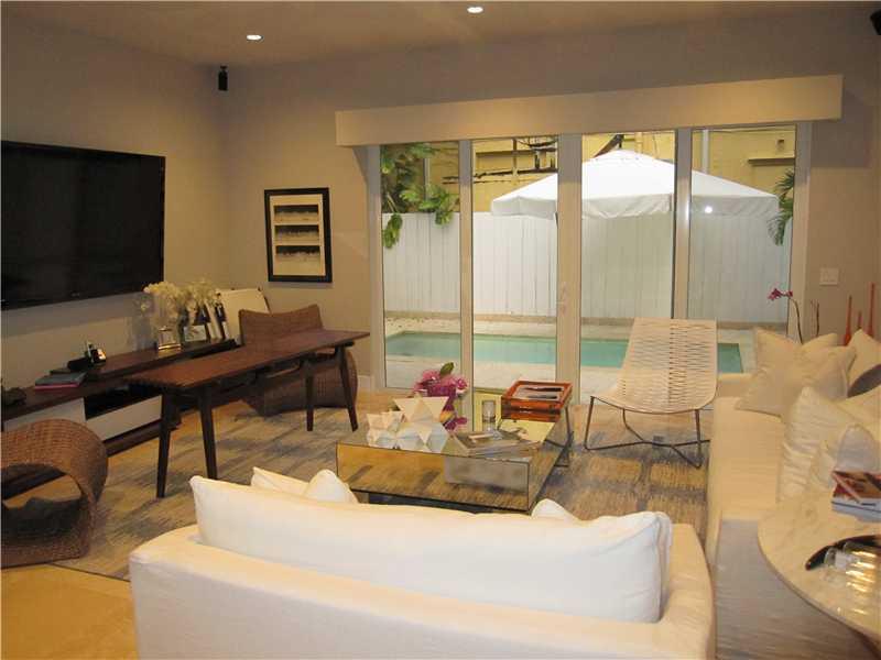 Modern architecture at its best. Top of the line finishes for this three bedroom, three and a half bath town home include travertine marble floors, designer kitchen and bathroom cabinets, quartz countertops, Italian porcelain tile floors and walls in the bathrooms, 20+ foot ceilings in the living room, remote controlled blinds and no maintenance front and back yard. Private pool. Three master suites on the second floor. Alarm system with cameras. One car garage plus two car gated parking.