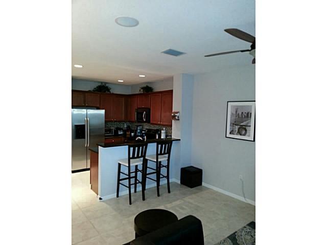 Exquisite townhouse in prestigious complex of Las Brisas. Unique unit with double panel hurricane impact windows and doors, security system and security video camera system, built-in sound system, bonus den with hardwood floors, luxury kitchen with granit e countertops and stainless steel appliances, top of the line lighting fixtures and fans throughout, upgraded storage and spacious shelving in the garage. Close to pool and playground, A+ Weston schools. Will go fast!!