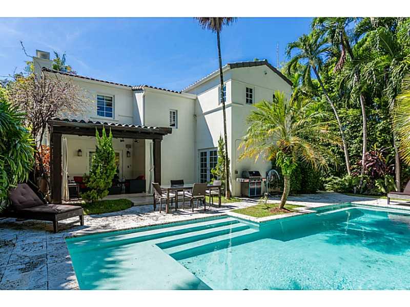 This charming 1936 European villa in Miami Beach's Venetian Islands is a perfect setting for family and entertaining. Set in lush tropical landscaping, the recently remodeled property exudes timeless character and boasts 3 bedrooms and 4 bathrooms over 2, 400 SF. It has a romantic coral rock pool with Jacuzzi and covered patio, chic master bath with frameless shower and standalone tub, exposed beam ceilings, wood and marble floors, and an open kitchen with gas range, chef's hood and granite counters.