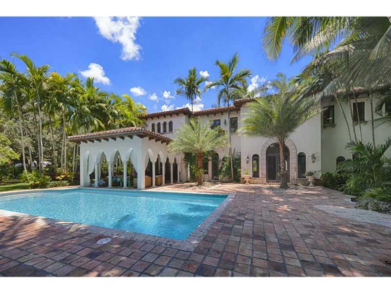 Entertainer's dream at this Peter Gallo designed NE Pinecrest tropical paradise. Situated on 1 acre w/ manicured lawn & lush foliage complimenting an inviting pool & enormous covered patio. The property features coral rock bathing grottos, koi ponds, tiki huts, and hot tub. Home has many distinct architectural details & exudes a warm charm. Soaring ceilings, oversized master w/ office, 5 ensuite bedrooms, mrble & wd flrs, impct win/drs, Formal LR & DR, 2 FR, Chef's gourmet gas kit, 3 car garage, generator