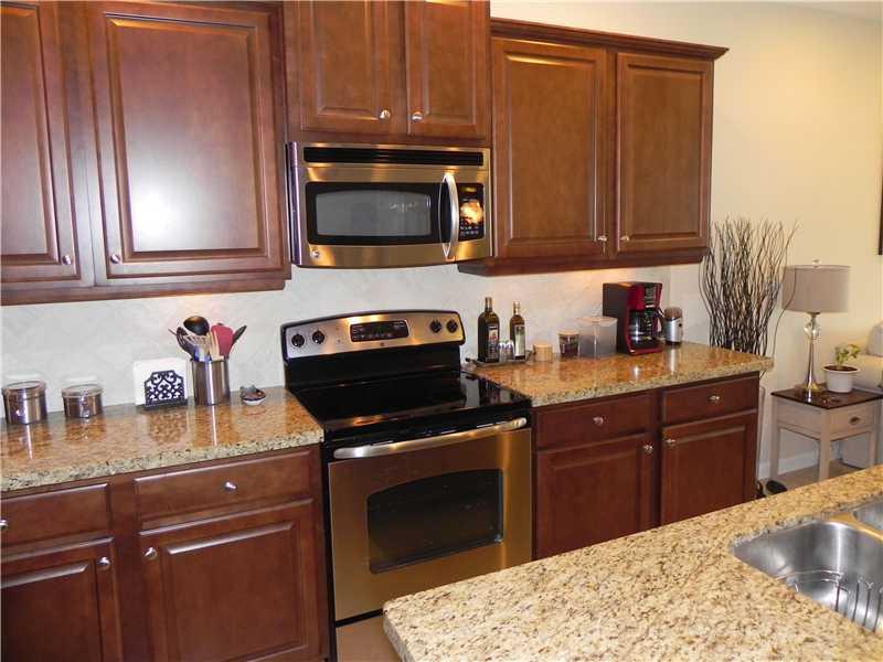 PRISTINE WATERFRONT UNIT IN GATED COMMUNITY FEATURING GORGEOUS KITCHEN W/UPGRADED CABINETS, CROWN MOLDING, UNDER-CABINET LIGHTING, PORCELAIN TILE BACKSPLASH, GRANITE COUNTERS & ISLAND & STAINLESS STEEL APPLIANCES. 9'CEILINGS & 18" CERAMIC TILE GIVE SPACIO US FEEL. LAUNDRY ROOM IS UPSTAIRS. SOLID OAK STAIR RAILING. THE FAUX-WOOD BLINDS STAY. 2-CAR GARAGE & HIGH IMPACT WINDOWS, RECESSED LIGHTING AND CEILING FANS. ALL LOCATED IN HIGHLY SOUGHT LOCATION WITH A+ SCHOOLS.