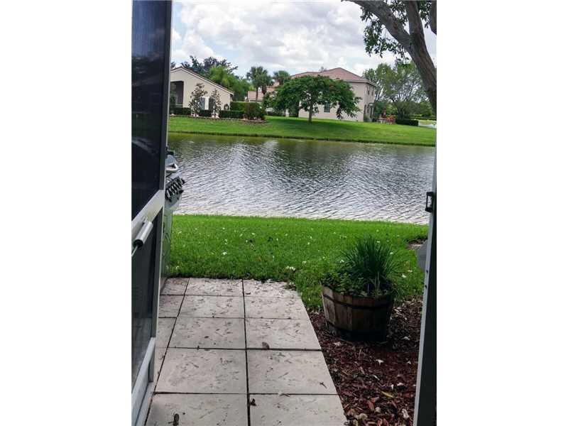 Beautiful Lake view 2-Story Townhome in quiet Gated Community. Remodeled kitchen with granite counter tops and stainless steel appliances. 1st floor tiled throughout with French Doors and remodeled bath. Wood laminate throughout second floor. Both upstair s rooms have full baths. Garage converted to 3rd bedroom. Alarm system. Laundry in unit. Screened-in tiled terrace. Community has a clubhouse for parties, pool, tennis court, and walking paths.