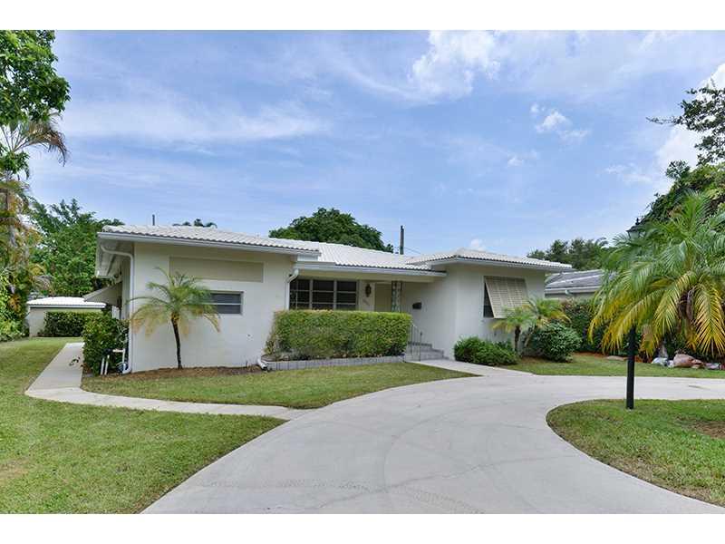 Miami Shores Beauty! Open layout with beautiful hardwood flooring, separate dining, living and family rooms plus front and back patios and storage bldg! Gas appliances, fireplace. 2 beautifully renovated baths. Tranquil cul-de-sac location offers privacy and quiet enjoyment plus a large back yard - great for children or entertaining friends. Yard ideal for a pool. Master suite and 2nd bed/bath split from 3rd bedroom/enclosed garage, enclosure as purchased by Seller. Circle drive, plenty of parking.