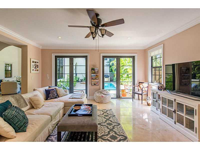Gated European style villa in the coveted S. Grove neighborhood known as Utopia. Interior courtyard opens to light filled living spaces with volume ceilings that overlook tranquil pool & lush gardens.Family room adjacent to high-end custom kitchen with is land & snack bar. Expansive master suite with private balcony and luxurious master bath. Lovely guest suite with separate entrance has living room/1BR/1BA. Walk or bike to the Grove village center's galleries, boutiques, cafes and bay front parks & marina