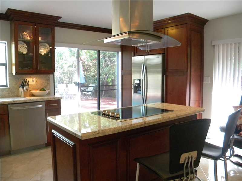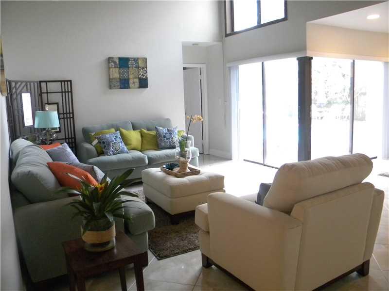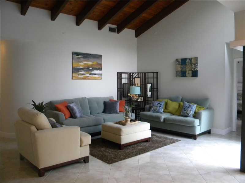 3/2.5 bath corner unit,2 car cg,pool, totally remodeled and meticulously maintained.Kitchen features all wood cabinets,granite counters & S/S appliances.18in diagonal tile thru out. Recessed lighting in fam rm, kitchen & dining rm. Soaring, wood cathedral ceilings. All baths have wood cabinets and guest bathroom has a jacuzzi tub. MB is very spacious with modern glass shower enclosure. Accordian & pull down hurricane shutters. sliding glass doors open to lovely pool area. Electric completely upgraded.