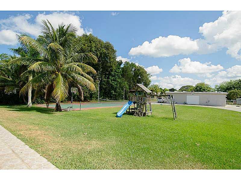 Welcome to Fla Fruit Lands, an equestrian community with one acre of land, this property features, 3 bedrooms and 2 bathrooms, Playroom that may be converted to a 4th bedroom, no HOA, CITY WATER!!!, wood and tile floors, aluminum shutters, 1,000 sq. ft. d etached garage/workshop and 1bed 1 bath efficiency, playground, tennis and basketball court, make this your own resort. Roof was replaced in 2002 and A/C in 2006.