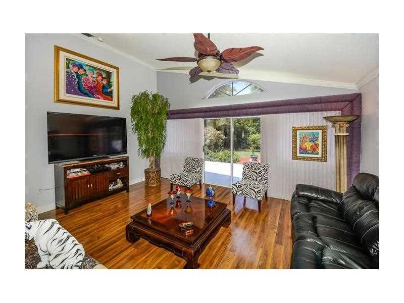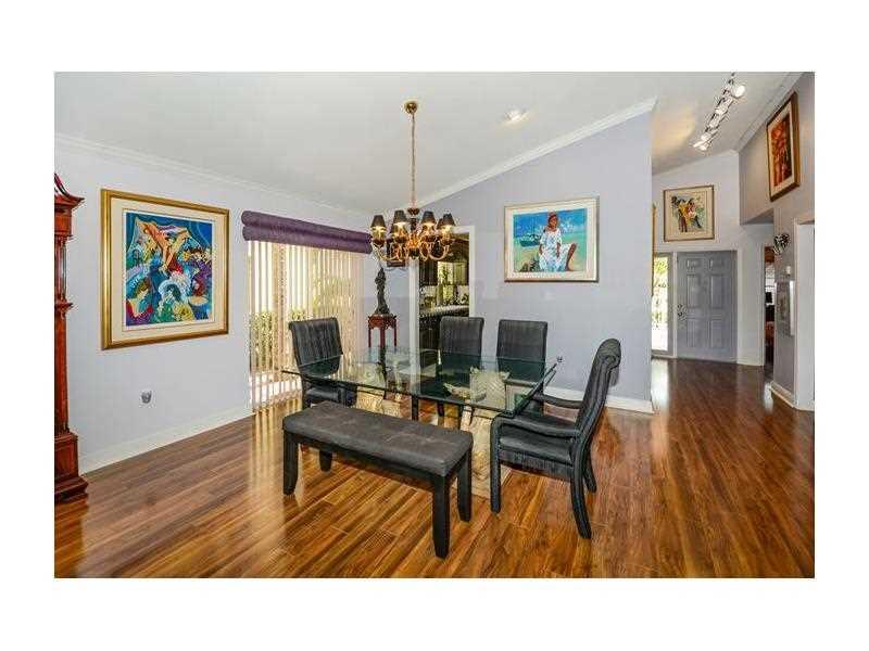 Truly unique 3/2 (2beds + den) one story home, no neighbors behind & park setting in front, remodeled & updated eat-in kitchen w/lots of cabinets, stainless steel appl & tumbled stone, spacious great room, wood flooring everywhere, crown molding & more! R oof 2011, A/C 2012, large patio (40x12) for relaxing or entertaining. Maintenance includes front lawn care. Set in cozy gated enclave w/community pool, steps to Town Center.