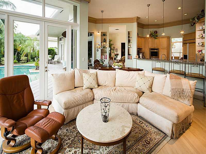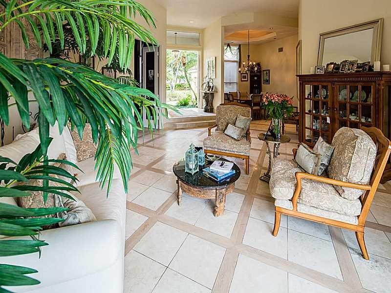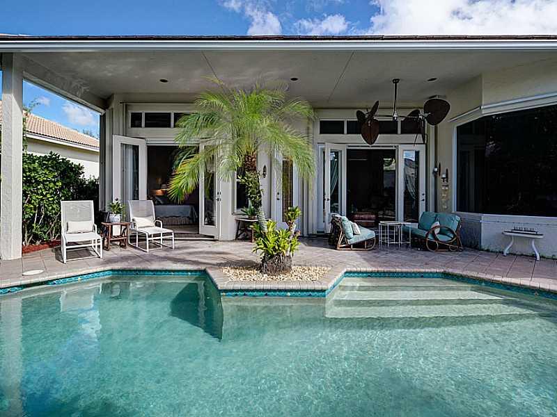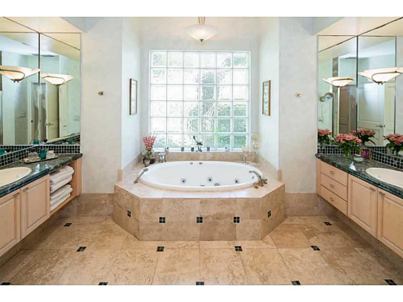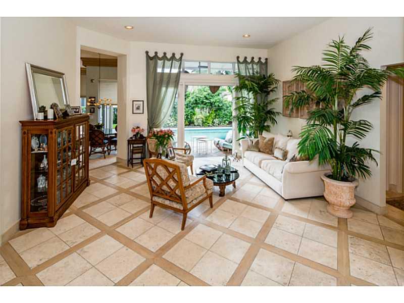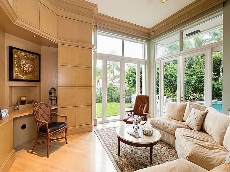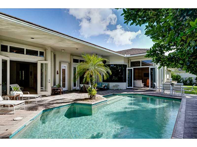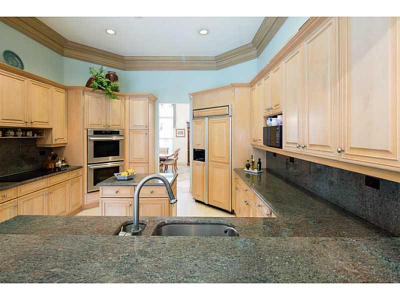 Gorgeous home offering 5 spacious bedrooms, a den & 3.5 bathrooms. The professionally decorated interior features high ceilings, french doors, marble & hardwood floors throughout, new carpet in all the bedrooms, a gourmet kitchen equipped w/ Thermador dou ble ovens & stove top, KitchenAide refrigerator & dishwasher, hardwood 42" cabinets, granite counter tops, & island, & new washer & dryer. Complete w/ accordion shutters & 2 car garage. The 11,153 SF lot has a beautiful pool & tropical patio area.