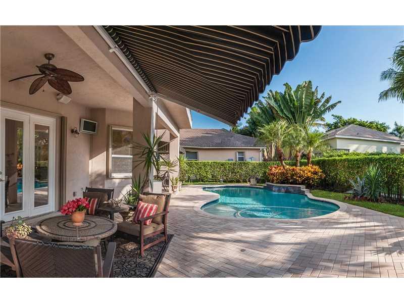 Prestigious Weston Hills gated golf course community! 4 bedrooms plus a Den on first level w/ 4 baths. Kitchen with maple cabinets, granite, & stainless appliances. French Doors to paver patio with fountain and Pool, beach entry in fenced private yard wit h surround sound, Platinum Mosquito protection & full marble cabana bath. Wood floors in all bedrooms, tray ceilings, Loft, balcony off masterbed, plantation shutters, closet organizers, Roman Tub, Accordions, 3 car garage with rubber floors, 2 New A/C's