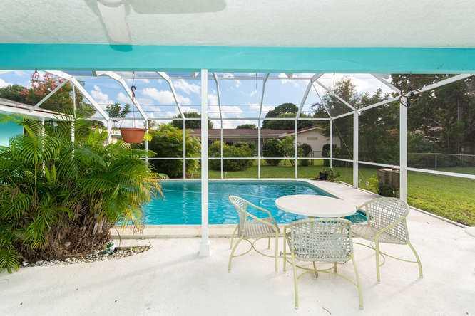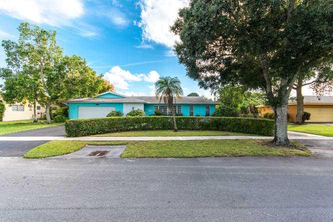 Classic 4bed/2bath home in sought after Secluded Gardens in Plantation. This charming home boasts beautiful curb appeal with circular driveway and well kept yard.Features sunken spacious formal living room with lots of windows.Formal dining room leads int o kitchen, which has room for a breakfast table.Large pass through window in kitchen opens up to covered screened in patio with large pool.All bedrooms are large and one of the bathrooms doubles up as a cabana bath.Floorplan offers great flow.