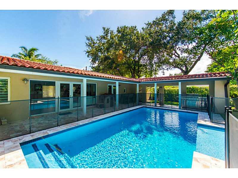 Exquisite home on a quiet street in prime South Gables location. Completely remodeled in 2014 with the finest finishes & materials throughout including stunning bamboo flooring and impact glass. Light filled open living spaces, with vaulted wood beamed ce ilings, open to covered terrace, pool & lush garden. Euro-style kitchen w/ island & Thermador appliances. Spa-like marble & stone baths w/ soaking tub and seamless glass shower. Minutes to shopping & dining in South Miami, Coral Gables & Coconut Grove.