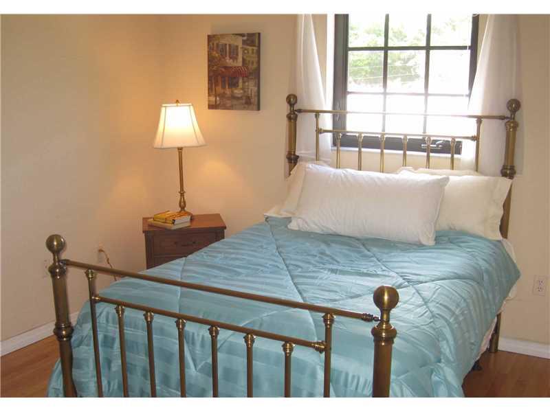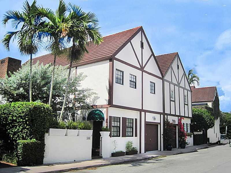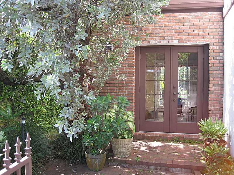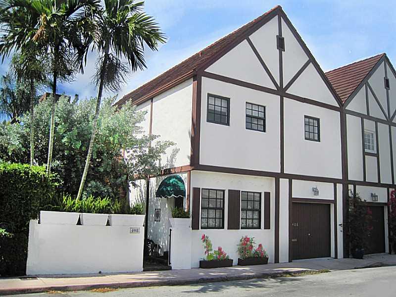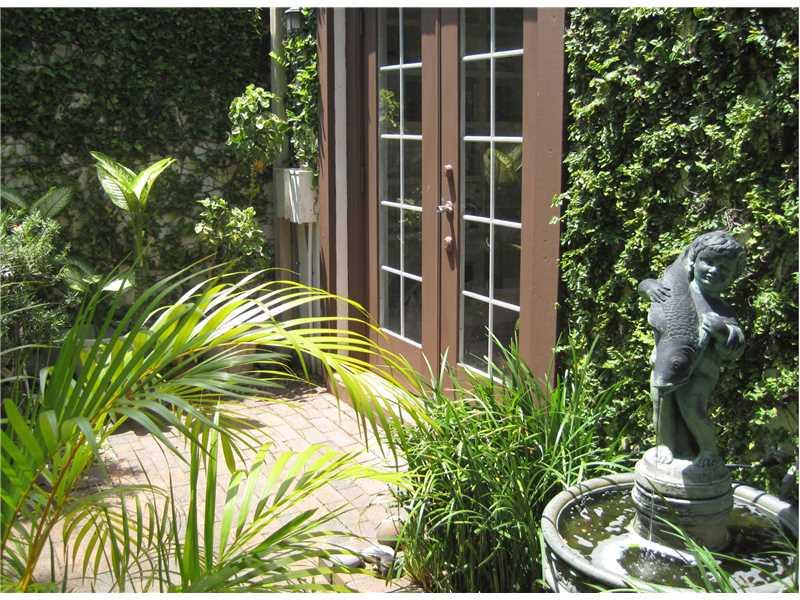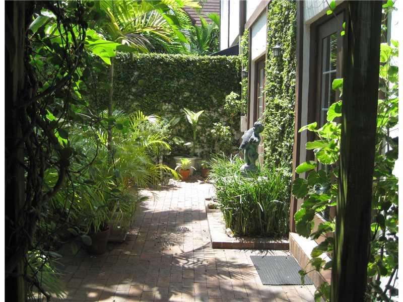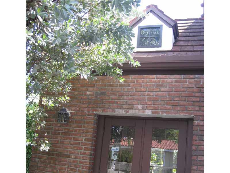 Charming 2-story townhome in the historic 1920's French Normandy Village off LeJeune Road five blocks north of Bird Road. This unit along with 4 others were constructed in 1989. Walled and gated with Chicago brick patio on three sides. Impact windows but mostly original condition. Foyer entry with half bath, soaring ceiling and fireplace in LR. DR has French doors to garden. Kitchen with adjacent laundry rm and pantry has pass through to Family rm. Upstairs, 3 bdrms + 2 baths plus lounge area for TV/den.