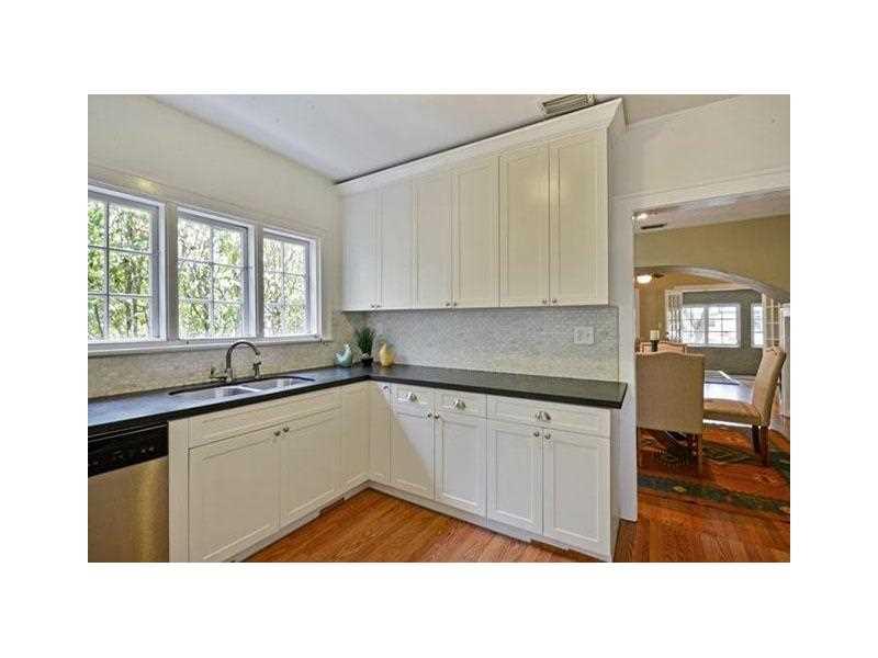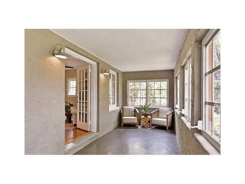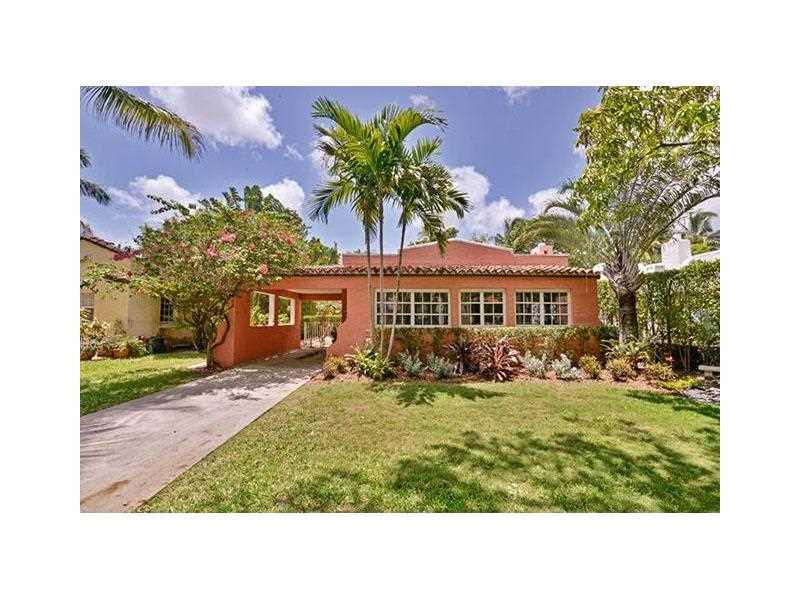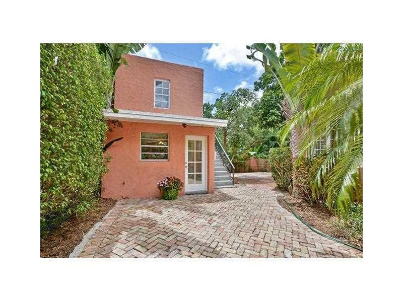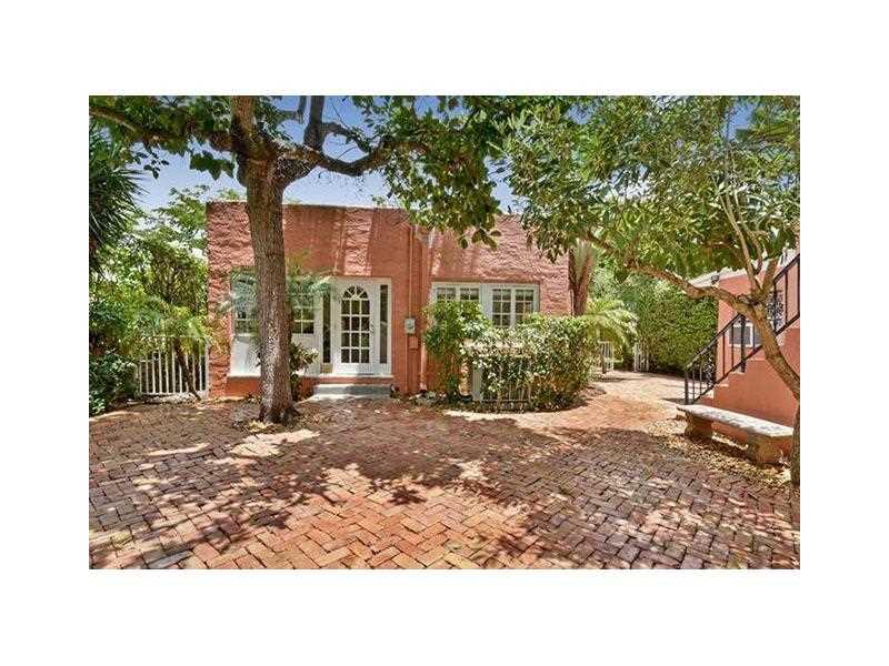 CHARMING OLD SPANISH in North Gables on beautiful tree-lined street. Great living room and dining area with large archway and original built-ins. Updated kitchen features granite countertops and stainless steel appliances. Three bedrooms and one bathroom in main house, enclosed bright front porch, working fireplace and wood floors throughout. Two-story detached guest cottage with 1 bedroom and bath upstairs and large office/ studio downstairs. Beautifully landscaped with old Chicago Brick courtyard.