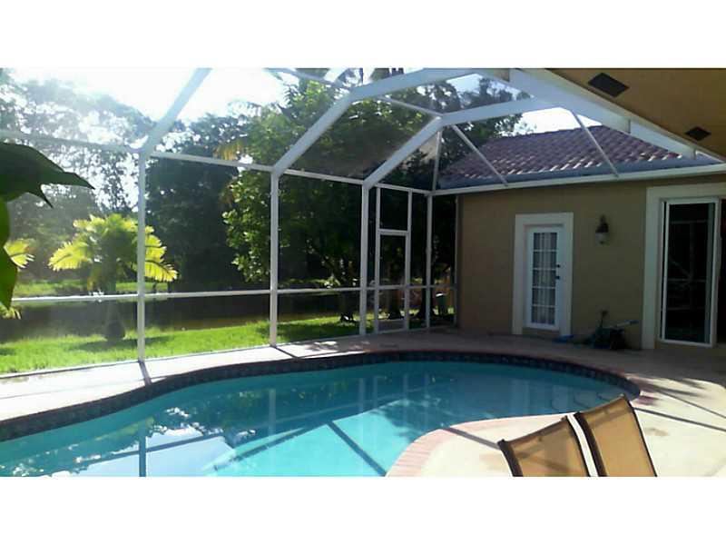 Spetacular house, located in gated community. It has great spacious living room with vaulted ceilings, and huge sliding doors leading to a beautiful pool and lake. Well maintained 4 bedrooms 3 baths home, the 4th bedroom is a large loft easily converted. Kitchen with natural light, upgrade cabinets, granite countertops, stainless steel appliances w/ breakfast bar open to the family room. The master suite is on the ground floor overlooks the pool . Perfect location close to restaurants and schools