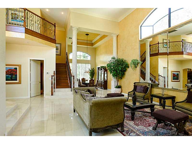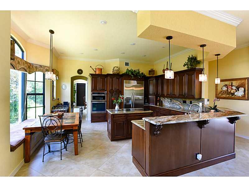 Le Jardines: Immaculate 5BR/5.2BA sitting on .42 acres completely renovated top to bottom estate home on a quiet cul-de-sac. HUGE back yard, impact glass, new roof, custom kitchen, stainless steel appliances, includes exotic granite, cabana bar, custom cl osets, coral fireplace, wood floors in all bedrooms, lots of storage, oversize patio and heated pool, battery operated silent garage doors. Upgrades too many to list!!! Community offers clubhouse, pool, 5 parks, lighted tennis courts & 24/7 manned gate.