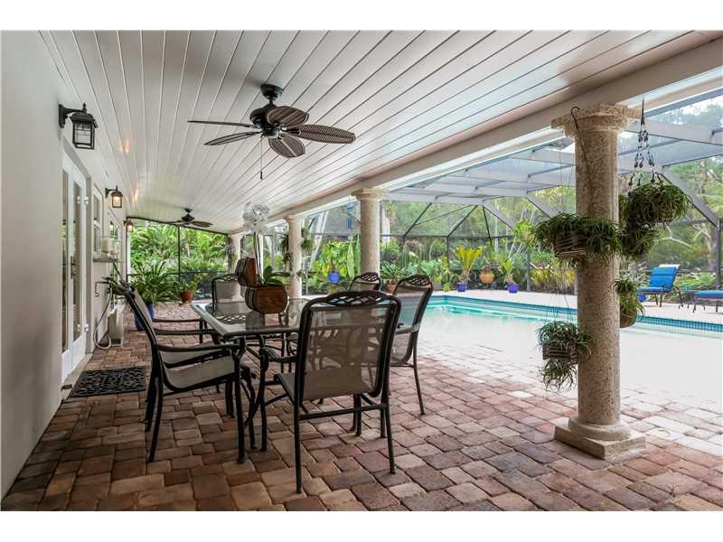 Nestled on a quiet 41,000+ Sq Ft amazingly landscaped grounds, this mid century modernized home is open and welcoming for any family. Stone and wood floors, spectacular granite, island kitchen - all w/the best wood cabinets and appliances. This home has a split plan + an office. Redone 18x36 pool and huge screened-in patio w/space for 100 guests. All impact windows and doors. Newer roof. Extra building for storage in addition to a 2 car garage.
