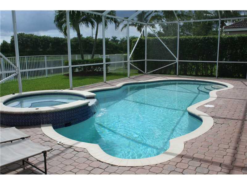 Beautiful Lakefront 1-story 4/2 Pool Home w/Heated Spa. Features include Oversized Fenced Lot * Wood Floors in Bedrooms * Rounded Walls * Central Vac * Sound System thru-out House and Patio * Remodeled Kitchen & Bathroom. Savanna Commons has 3 pools, slid e, putt putt, roller hockey rink, soccer field, basketball courts, tennis courts and cafe. A+ Weston schools. Hurry!