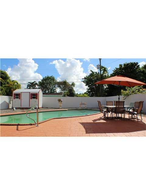 Beautiful 3/2 and a half bathroom turn-key pool home. Home features beautiful porcelain tiles and laminate wood floors. This home has high ceilings with crown moldings and recessed lighting along with textured walls. Custom Built Kitchen with S/S applianc es, granite countertops, and wood cabinets. The elegant MB features a French Door entrance, a spacious walk-in closet and a master bathroom equipped with a roman tub, shower w/ glass doors and bidet. Private fenced yard and pool side covered terrace area.