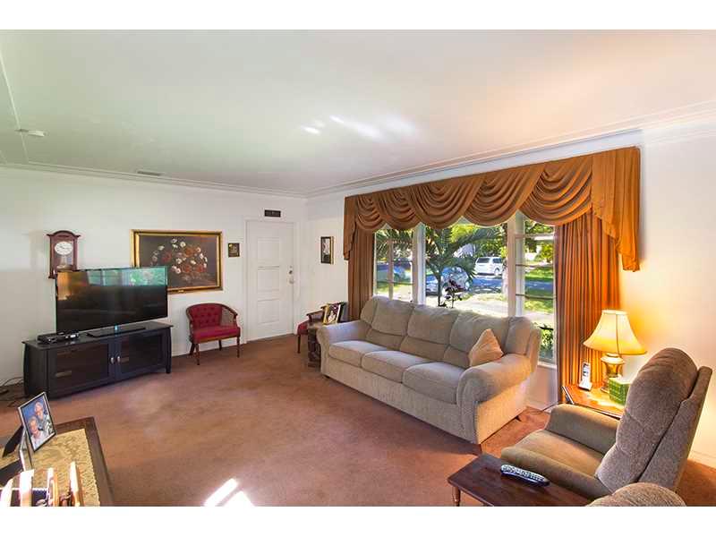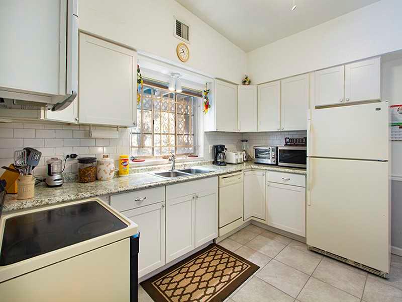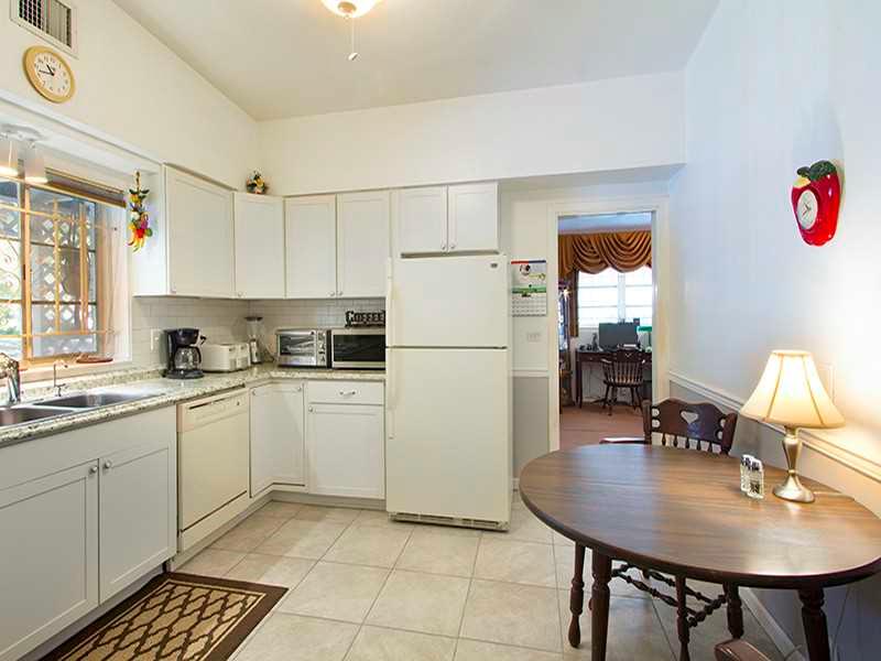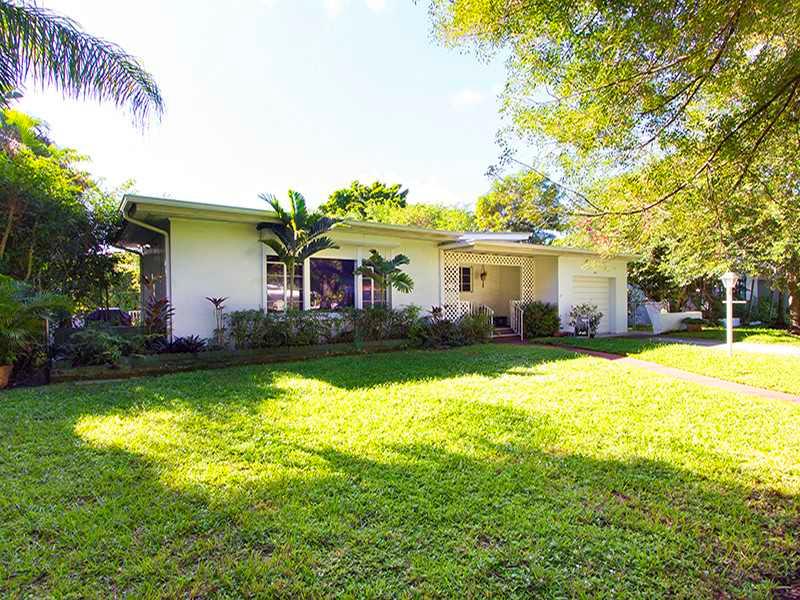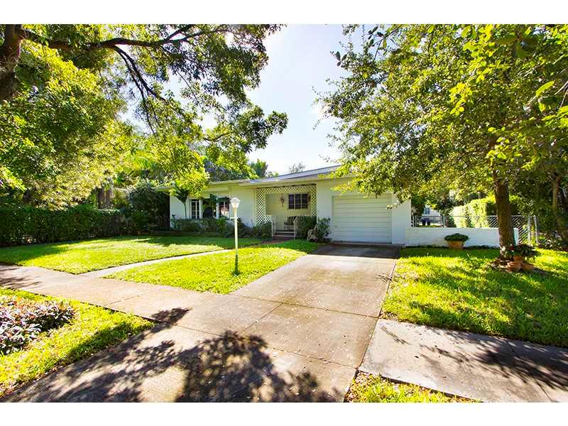 Located on a quiet street and centrally located to all that Miami Shores has to offer, this starter home is just waiting for you to make it your own. Unique high-vaulted ceilings throughout make rooms airy and light. LR w/ soapstone fireplace, tray ceilin g. Bright & light kitchen features updated cabinets and granite counters. Hardwood floors in LR and bedrooms. DR w/ quarry tile & lots of windows w/ access to private yard w/ patio & lots of space for pool. Master bed w/built-in closets. 1-car garage.
