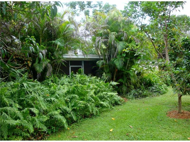 This corner Pinecrest property is on a quiet street and within the Pinecrest School District. Nice floor plan featuring formal living and dining rooms, kitchen with breakfast bar, sliding glass doors lead from the family room onto a spacious screened-in patio - perfect for outdoor dining! Tiled throughout, indoor laundry room, hurricane shutters, newer roof and A/C, double garage, and circular drive. A tropical garden with mango, avocado, and tangerine trees; palms, bromeliads and orchids.