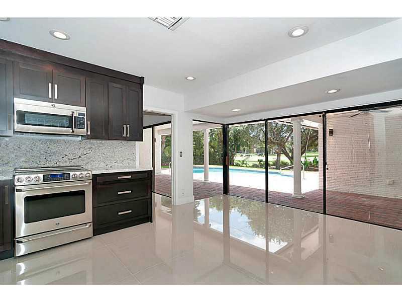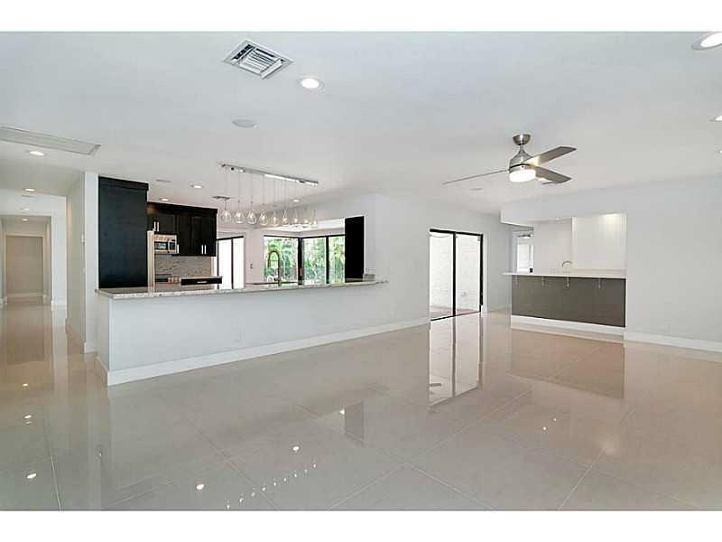 Large golf course home located on a quite street in one of South Broward's premier neighborhoods. Completely renovated to a tasteful, modern & neutral tone with finishes such as; 32x32 porcelain floors, top of the line GE SS appliances Cafe series, LED li ghts throughout, exotic white granite, custom wood cabinets, custom wet bar, wine fridge & white quartz countertops, unique & modern chandeliers in bathrooms and foyer. Great open layout & split plan bedrooms. New driveway, newer roof, new landscaping.