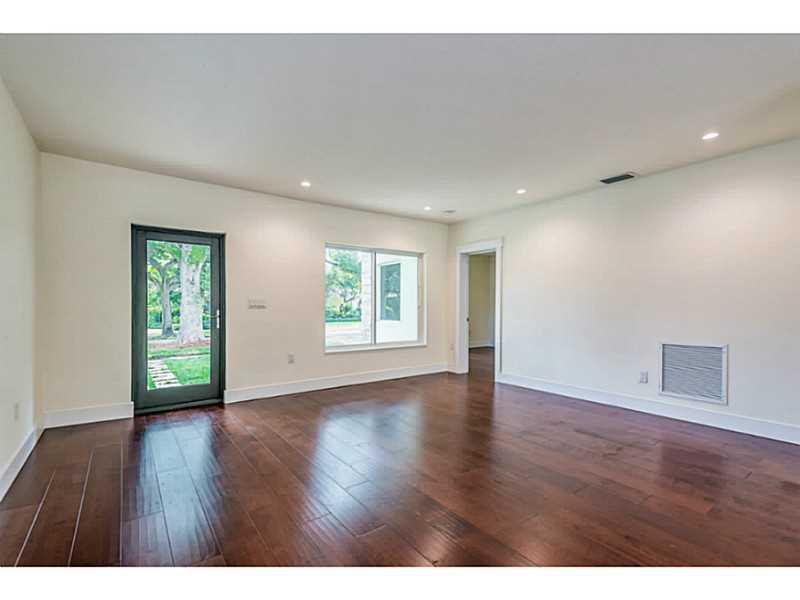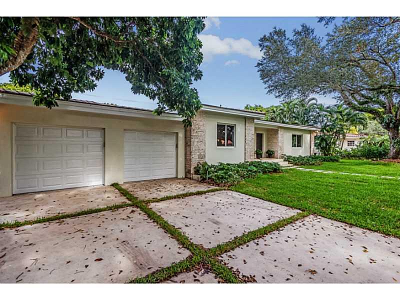 Magnificent transformation of a classic mid-century ranch style home full of natural light on quiet tree-lined street. Clean, contemporary lines and high quality finishes set this home apart from all others. Impact windows and doors and beautiful Birch ha rdwood floors throughout. Triple split plan with 4 very large bedrooms and 5 bathrooms PLUS a 5th bedroom/office with private entry. All white kitchen is outstanding. Master has huge walk-in closet, lavish bath with vessel sinks, separate tub and shower.