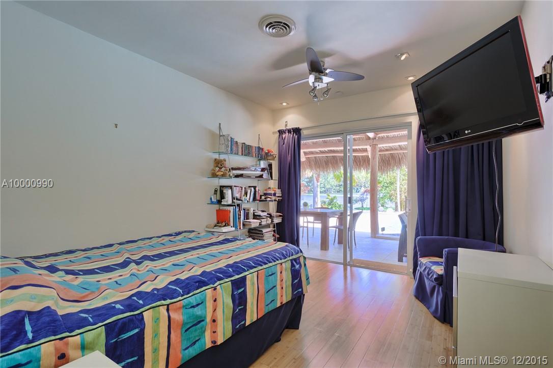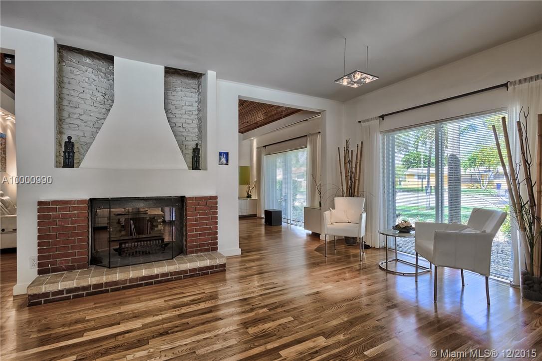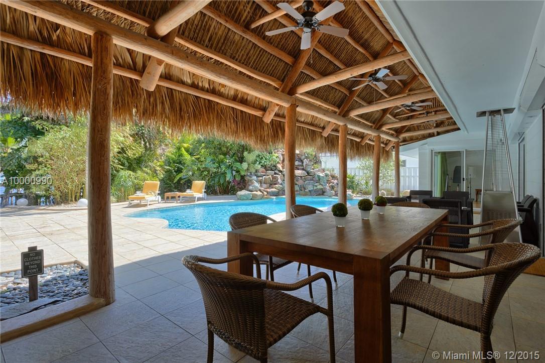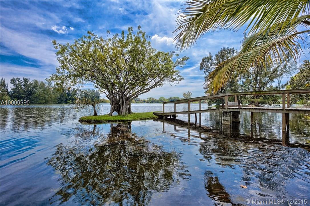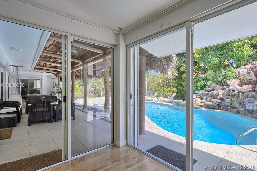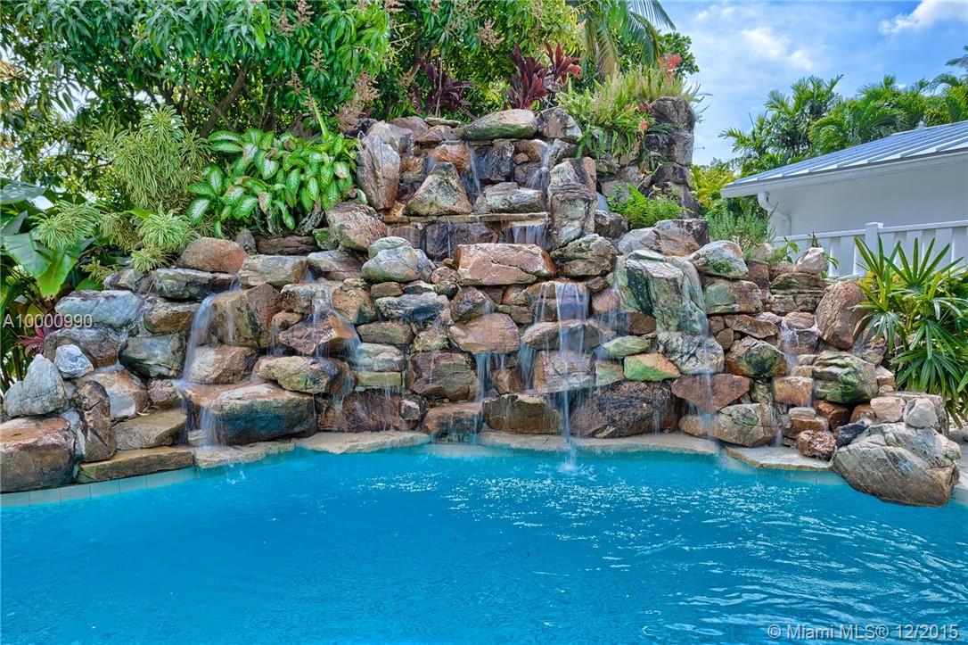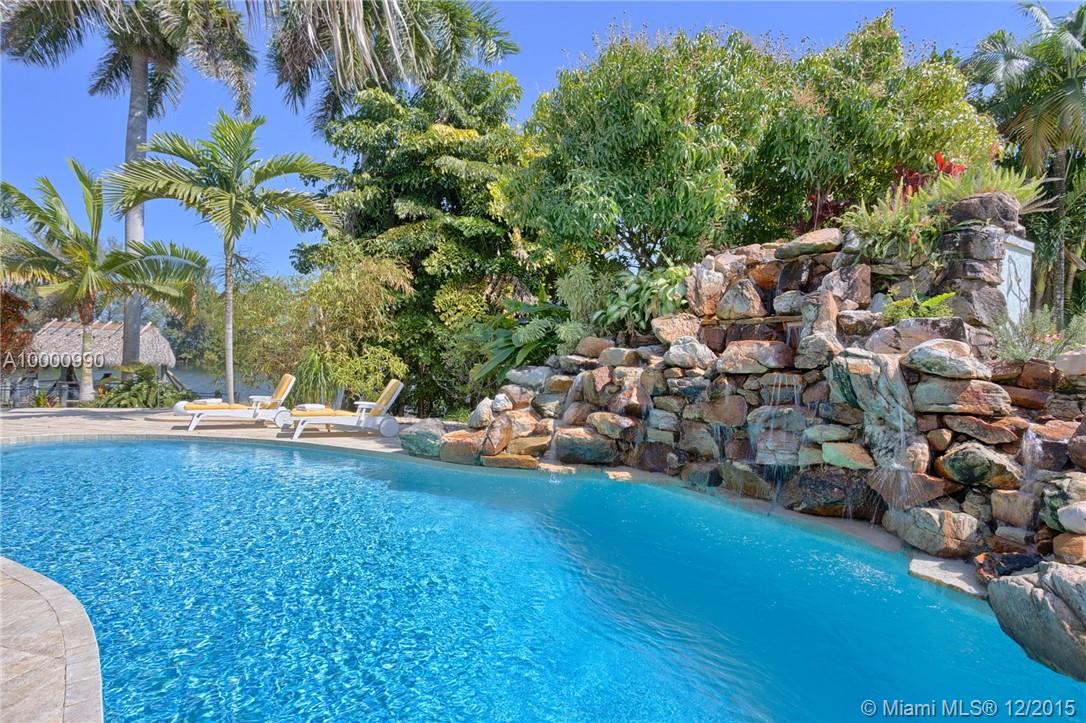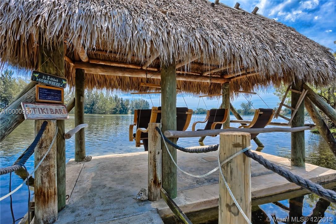 Miami- Secluded Lakefront Paradise with old Florida Charm. Substantially remodeled for outside entertaining:oversized Tiki accommodates large events, brand new masterbath with dual sinks, cabana bath, modern European style gourmet kitchen (view over lake), hurricane proof man cave (convertable into media room/bedroom), double sided working wood fireplace & more. All bedrooms oversee pool area with waterfall. Plenty of storage, separate workshop & office 2- car garage with car lift. Beautiful sunrises!