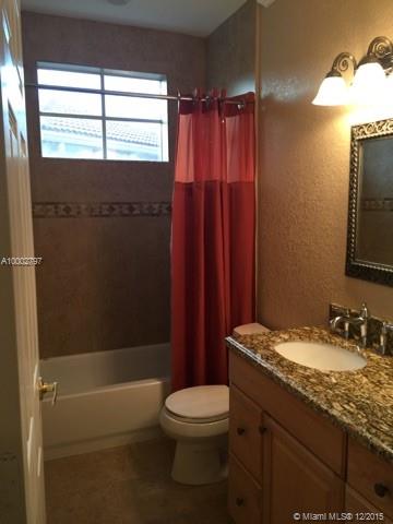 Immaculate 4/3 single family pool home located in the gated community of Vizcaya. One bedroom & bathroom downstairs and large family room upstairs with balcony access. Large screened patio and heated pool with salt system. Home features crown molding, 42 inch kitchen cabinets, granite countertops, stainless steel appliances, designer light fixtures, brand new energy efficient a/c unit, fireplace and mounted flat screen TV. Brand new roman shades installed on all windows. Located on cul-de-sac.