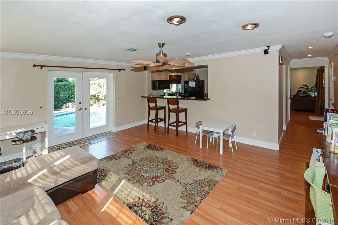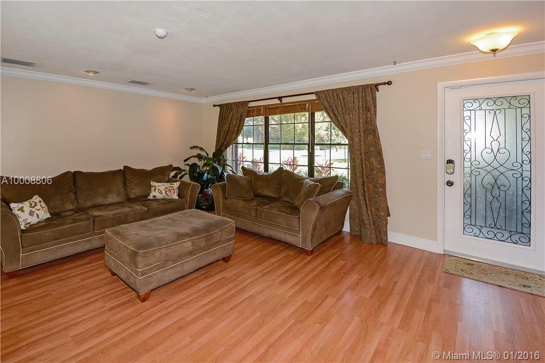 Charming 3/2 one story w/2 car garage set on 13,000 sq ft lot, relax on your private patio or under your Tiki hut & enjoy the open freeform, solar heated pool which is hidden behind privacy hedge & lushly landscaped fenced yard, updated wood & granite kitchen, tastefully remodeled bathrooms, wood laminate floors, crown molding, child fencing, security system, surround sound, A/C 2010 & more! Freshly painted! Move in ready!