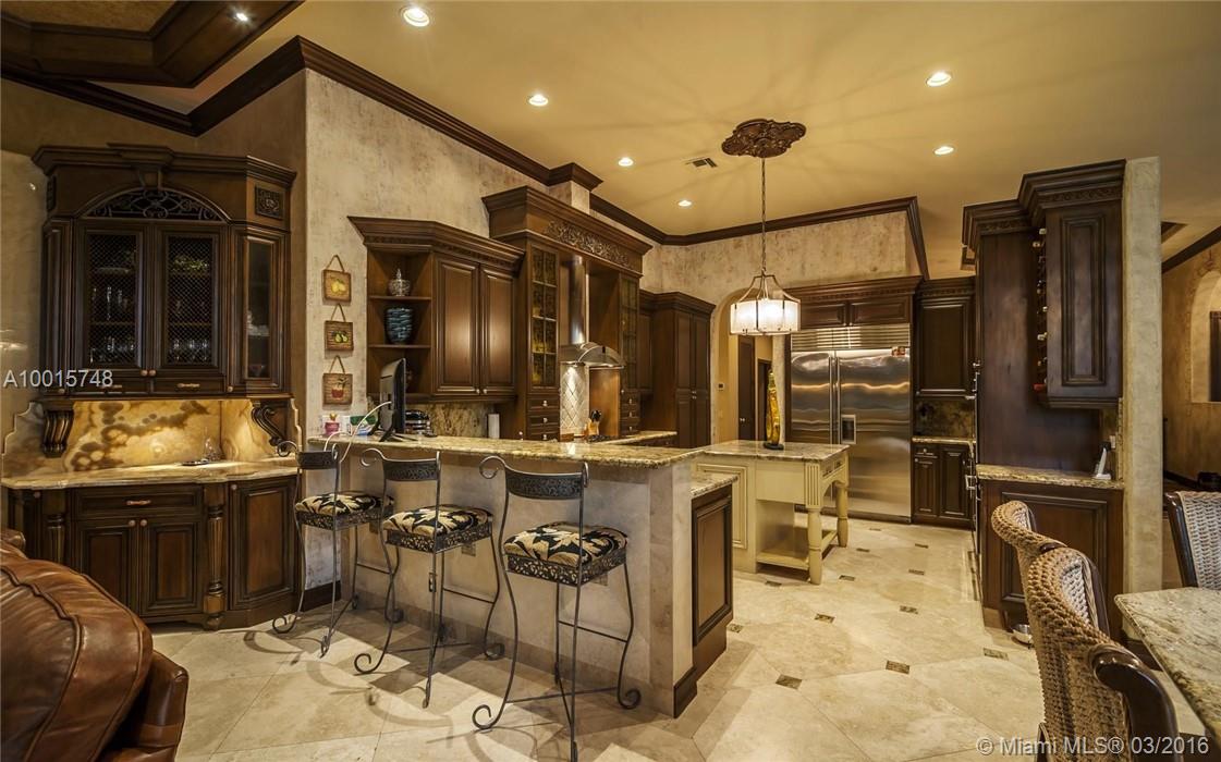 Elegant GOLF FRONT Estate sits majestically on oversized 11,815 sq ft lot. 5 BR's+office, 4.5 baths. Newly Renovated tranquil freeform saltwater pool/fountains w/travertine patio, fenced play area & summer kitchen. Saturnia marble & wood flooring. Custom office w/built ins. MBR w/sitting area & spa bath w/marble floors & granite. Kitchen w/42" wood cabinets, Stainless, & granite. Newer A/C, crown moldings, plantation shutters, tray ceilings, accordions, cir drive & 3 car garage.