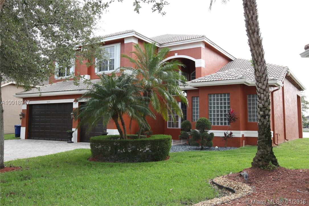 A lake front gem! This 5 bed / 5 bath beauty offers over 4000 SqFt of open spaces and high ceiling contemporary design. Property features 2 bed and 3 bath downstairs. This gorgeous estate sits on a cul-de-sac with an oversized lot overlooking the lake. This is the lowest priced lake front home in Sunset Lakes. Just a small change of carpet in rooms and stairs and your buyers will enjoy pure luxury at its best value. No HOA approval needed! *** $3000 BONUS TO SELLING AGENT ***