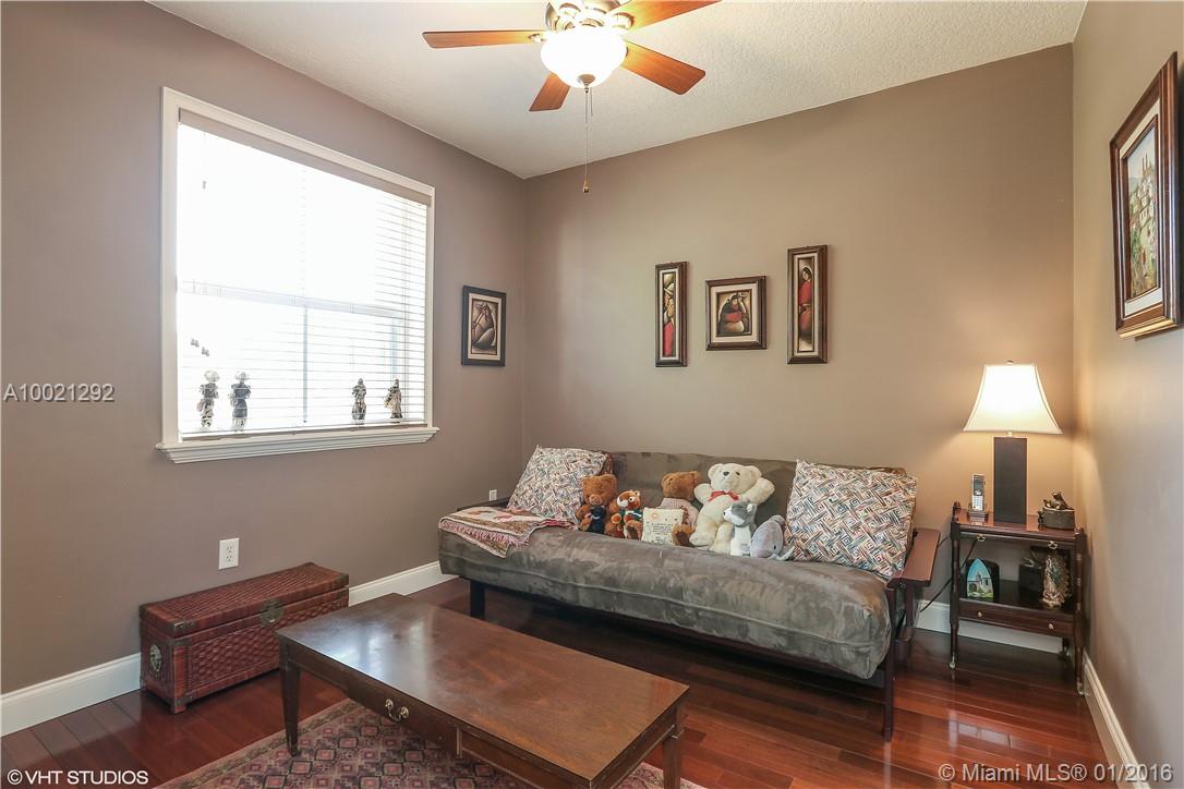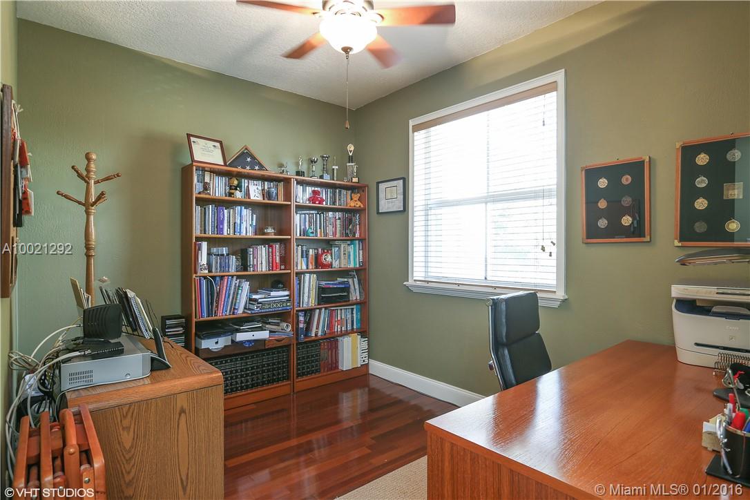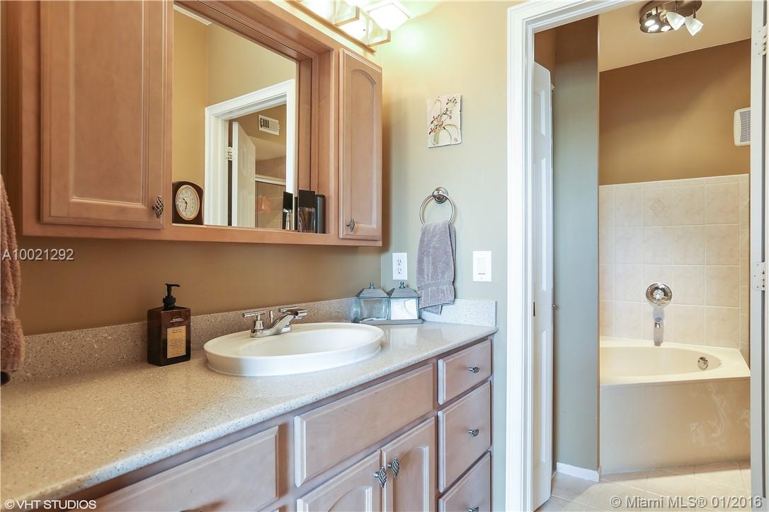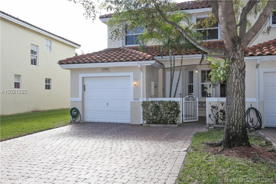 This 2-story TH is located in secure, Doral Chase, guard gated community in Doral Park. The treelined streets are impeccably cared for w/the low monthly maintenance fee. Corner unit w/pavers, garage & courtyard. Soaring ceilings & impeccable custom updated kitchen, new cabinets, appliances & corian countertops. Light & bright living dining area to fenced, large & private patio. Large den on 1st floor w/full updated bath. 2nd floor is Brazilian Cherry hardwood flooring in 4 bedrooms (one used as ofc).