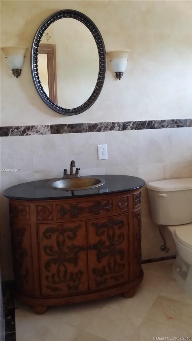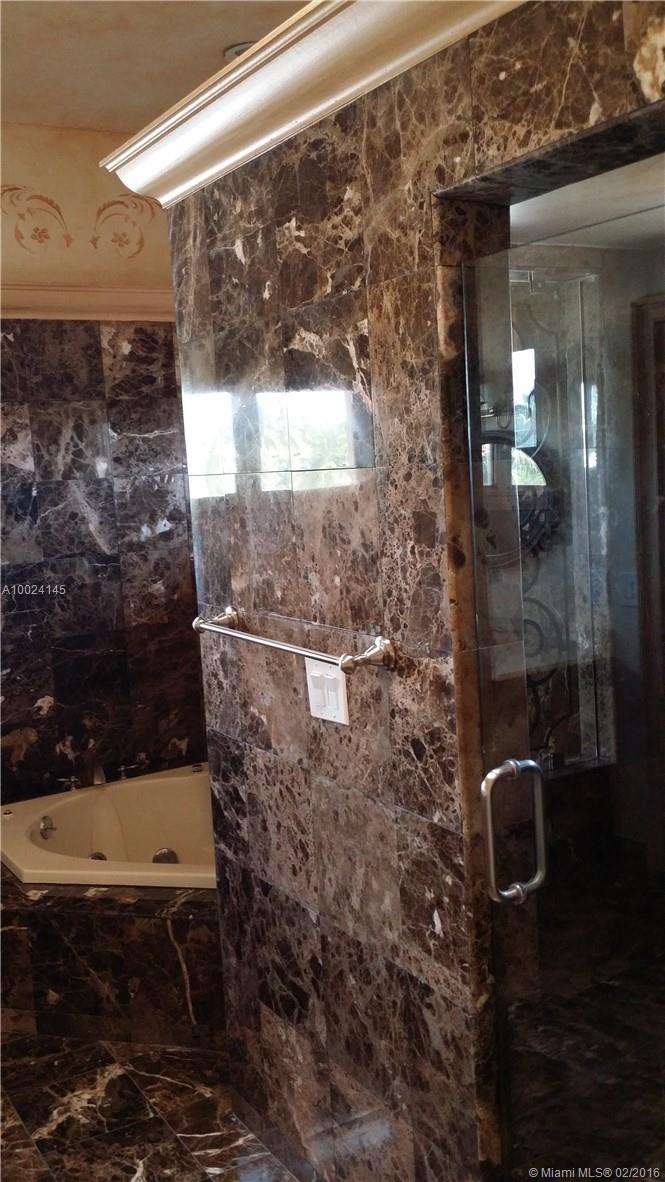 Boaters paradise in exclusive gated community. Large 2 story home with marble floors throughout the home, boast 6 bedrooms 61/2 baths, spacious eat-in kitchen overlooking the pool and waterfront, a family room on each floor, master bedroom with spa and much more. Lot has approx. 75 feet of waterfront and private dock with water and electrical power. Dock can accommodate large vessel. Previous owner kept a 81' Ferretti yacht docked at the property for several months. Ocean access via Haulover. .