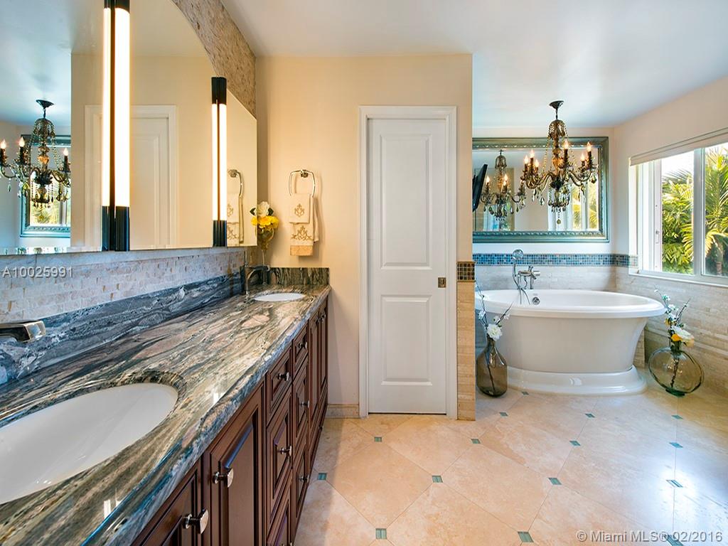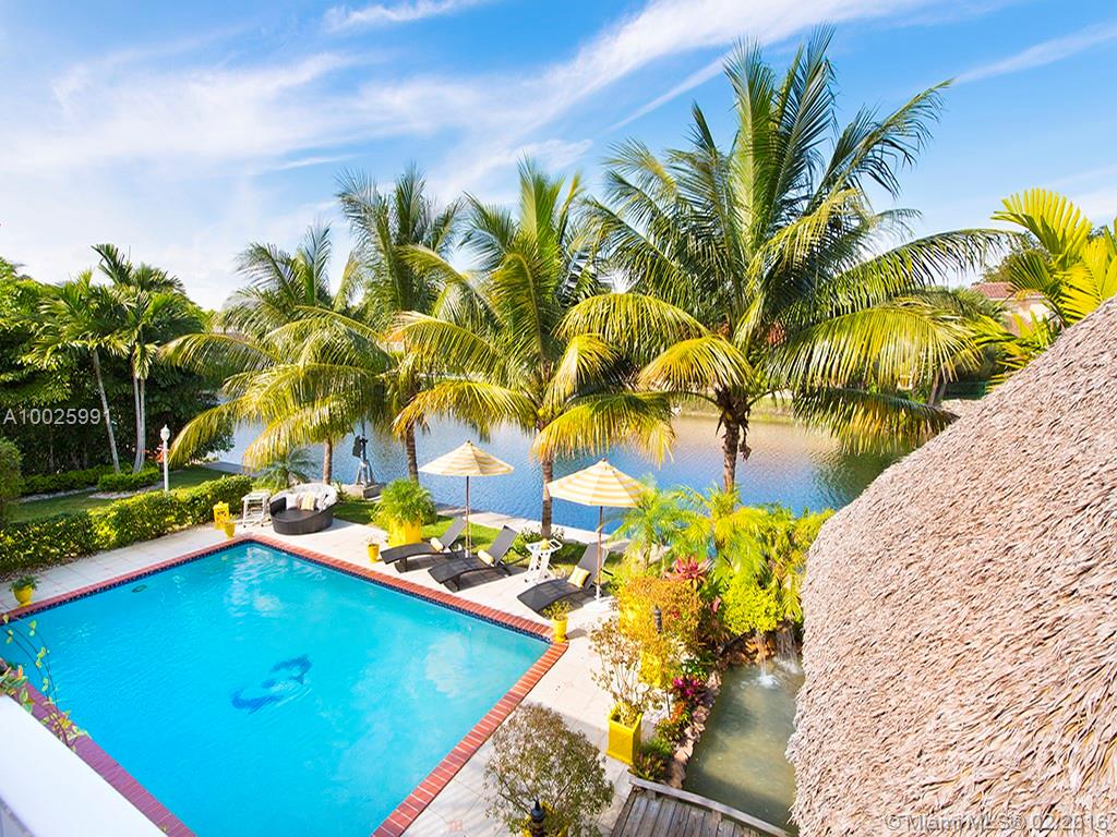 Entertainment delight, beautiful updated waterfront home with over 7600 sq ft in gated and desirable Gables by the Sea. Enjoy the pool, custom landscape, Koi ponds and Tiki hut by the large covered entertainment patio. Watch sports in your home theater with popcorn machine and bar. 4 bedrooms and 3.5 bathrooms on the main floor plus a game room, bedroom, den and bathroom on the ground floor. Can be used as an in law suite. Large living room and formal dining room. Enjoy elegant Florida life. 4 car garage.