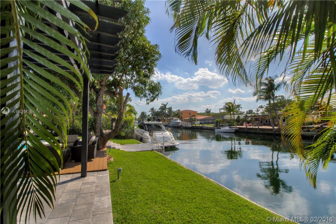 Great opportunity to own renovated Keystone Point waterfront pool home. 5BR/4Bth plus office. Wood and Tile floors thru-out. Kitchen with designer cabinets and granite counter tops. Spacious open living & dining area. All bathrooms renovated with designer cabinets. Master over looking pool with sliding doors to patio. Beautiful backyard for entertaining with deck and Pergola. Boat dock with ocean access and no fixed bridges to Haulover Inlet. 75FT on waterfront. 24/7 Guard-Gated Community.