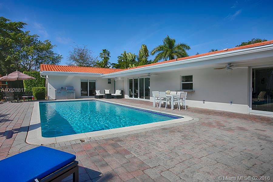 Beautiful renovated one story home in quiet N Prospect Drive close to Sunrise Park. Open floor plan that brings natural light to living areas. 4B,2-1/2 b and office. Property features impact windows and doors, porcelain floors, updated bathrooms . Great views of oversized pool and back garden with privacy hedge. 2 Car Garage. New MB walk-in closet, boy's room closet and linen closet. All stain steel appliances from 2012, new garbage disposal. BBQ/Grill and pool fence stay.