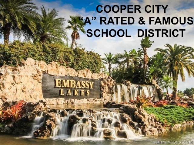 BEAUTIFUL EMBASSY LAKES IN COOPER CITY, WALK TO "A" RATED EMBASSY CREEK ELEMENTARY SCHOOL*NEW ROOF & TOP OF THE LINE BRAND NEW AC, RECENTLY PAINTED IN & OUTSIDE, 3 BEDS, 2 1/2 BATH, 2STORY W/ 2 CAR GARAGE*HUGE FAMILY ROOM*GOOD SIZE BEDROOMS ALL UPSTAIRS*MASTER BATH HAS DUAL SINKS, SEPARATE ROMAN TUB AND SHOWER*ALARM (AS IS)* SKYLIGHT IN GUEST BATH* * SPACIOUS FENCED BACK YARD* GORGEOUS CLUBHOUSE W/ GYM, SWIMMING POOL, TENNIS COURTS, BASKETBALL, LOW MAINTENANCE FEE. EASY TO SHOW* GREAT PRICE FOR THE AREA.
