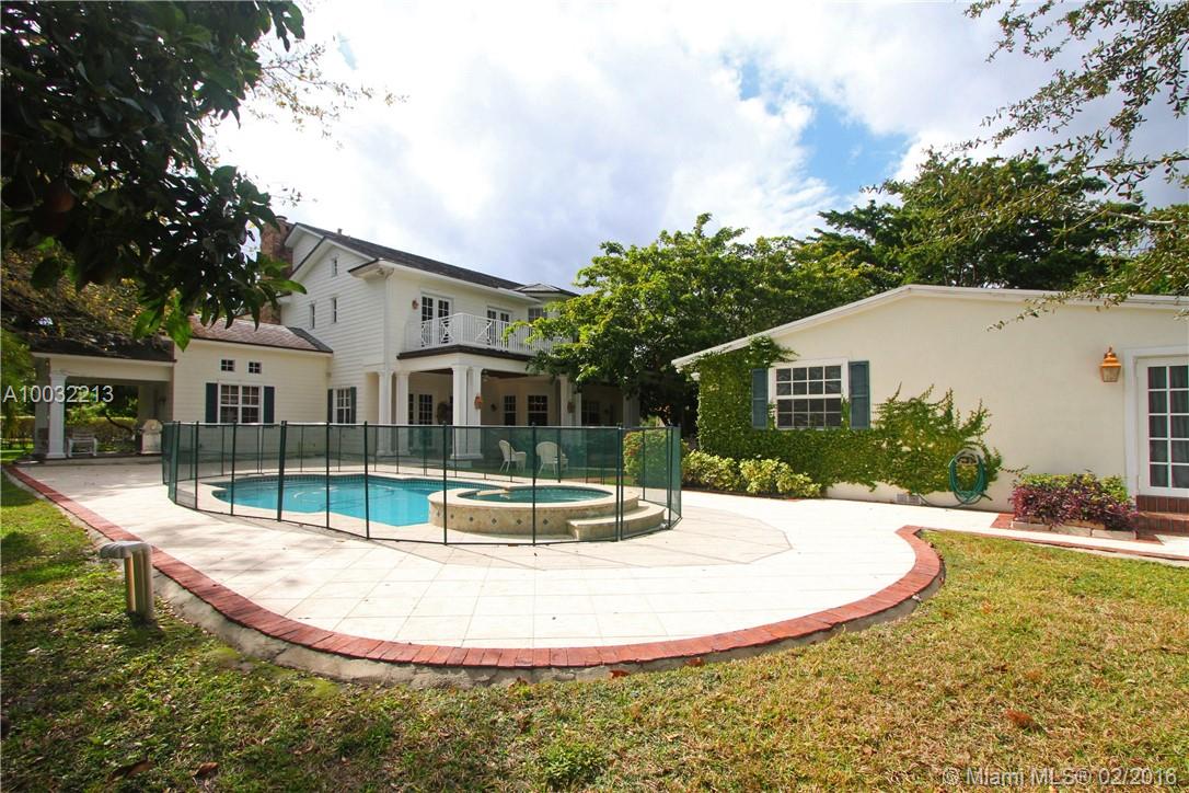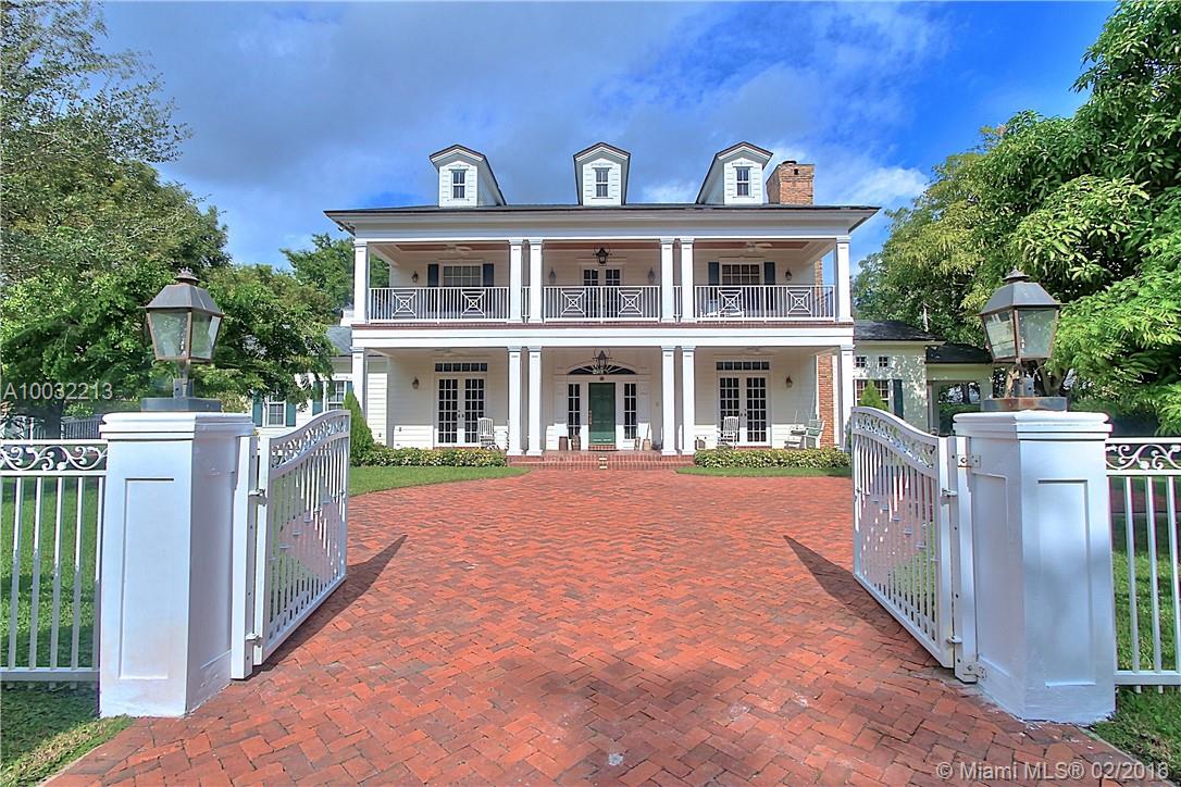 TWO STORY COLONIAL REVIVAL CUSTOM home with a 2 bedroom detached guest house in North Pinecrest. Home has terraces & porches on three faces of house which provides incredible natural light. Designed true to architectural style w/ precise symmetry; including foyer entry with sweeping staircase, gourmet kitchen open to family, & full length deep terrace. Master bedroom has double doors to adjoining room that can be nursery or home office & both open to private terrace.