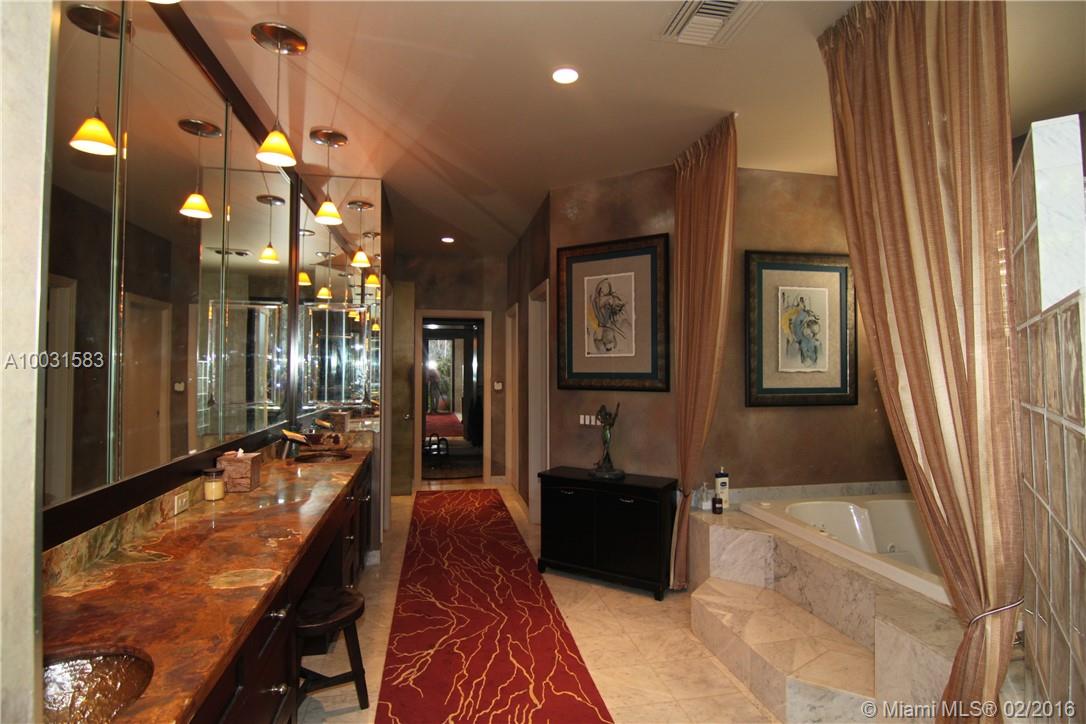 Pinecrest custom gated Executive Home on large 27700 SF lot. High ceilings with marble & wood floors throughout. New kitchen opens to breakfast area and family room. Formal Living and Dining Rooms. Fireplace. Floor to ceiling windows & French Doors! Large Master suite and bath with open vistas. Split 5th bedroom en-suite plan. Stunning hi-ceiling roofed patio with open pool! Tiki hut with summer kitchen. Lush landscaping & koi pond. Dream Home with minimal personal touch! Fabulous value!Fabulous property!