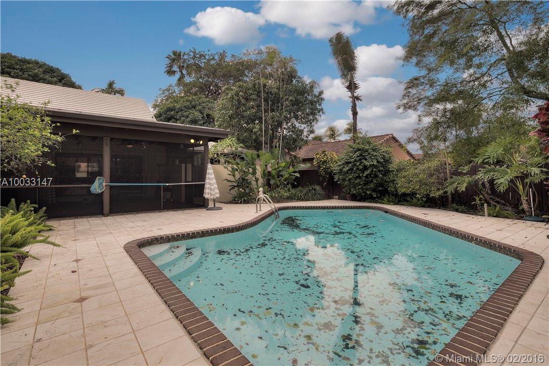 One of a kind 7 bed/4.5-bath cul-de-sac home w/ 4,500+sqft has it all! Double door entry, great room w/ 22 ft vaulted, wood beamed ceilings, fireplace, formal dining room, gigantic kitchen w/ breakfast area, office/work space, master suite w/ his & her walk-in closets & master bath, laundry room, maids quarters, covered screened patio overlooking pool, 2 car garage, 1/3 acre lot. Gated community perfect for growing families! Close to houses of worship,"A” rated schools, Aventura Mall, I-95, & airports.