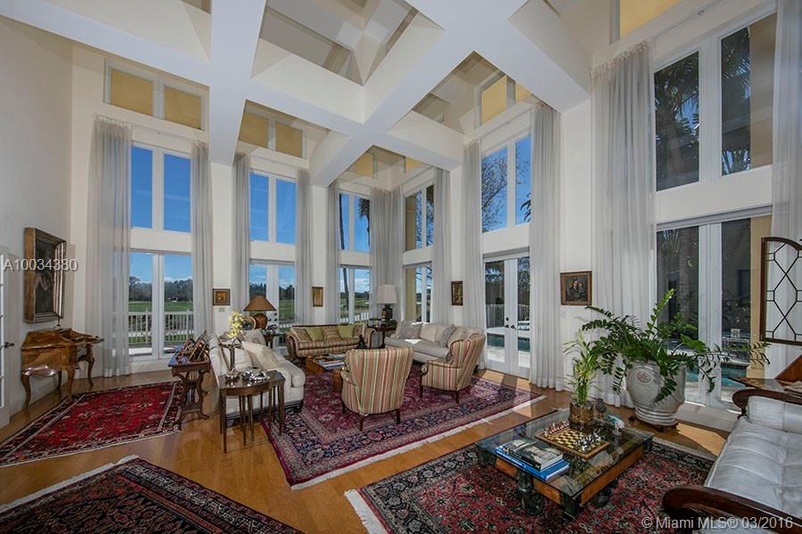 The Riviera Golf course is your back yard! 2001 coveted Santa Maria home on 13,548 sf lot w/beautiful new lake view.Stunning living room w/highrise ceiling,abundant light.Double doors from dining rm open to private pool area+sundeck.Cooks kitchen w/island, open to fam rm & breakfast w/more unobstructed views of golf course.1 bdrm guest suite down stairs plus maids qrtrs.Spacious master w/breathtaking golf course view from terrace;2 walkins,large bathsuite. 2 addtl bdrm suites upstrs. Impact w+d. 2car gar.