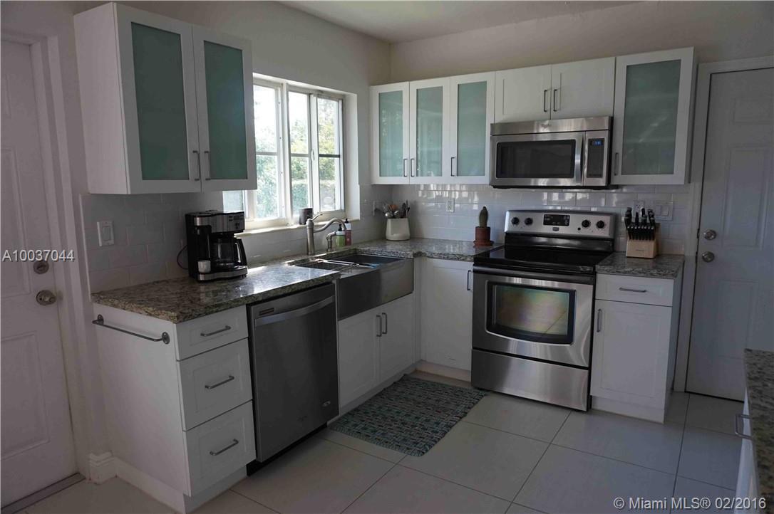 Miami Shores 3 Bedroom 2 Bath home w/ Renovated kitchen stainless steel appliances, granite tops & wood cabinets, washer dryer all 2 years old. Beautiful original wood floors in all bedrooms & living room w/ 24x24 large tile in main living. AC Oct 2013, new sprinklers connected to city water, impact windows, Tented in August 2014. Sought after corner lot, light bright home with extra large lot plenty of room for large pool, 2 car garage, great location near schools, entertainment, downtown & beaches